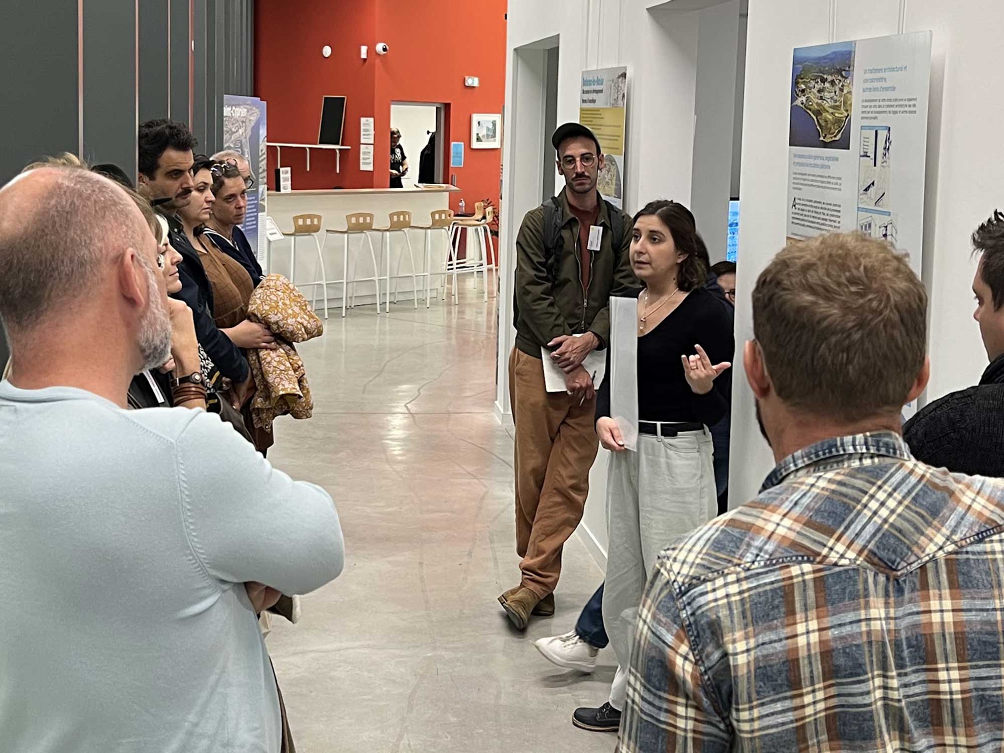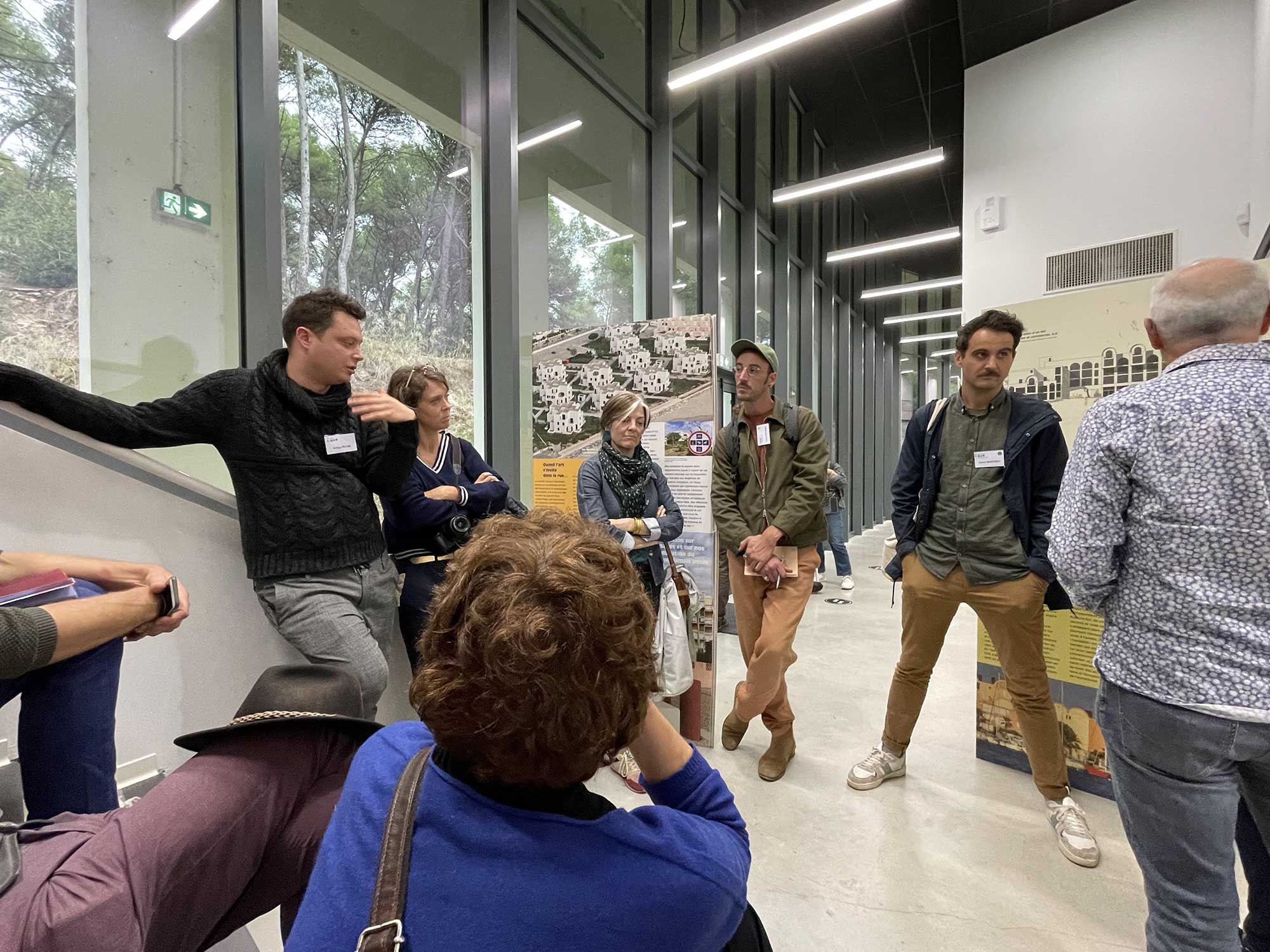 - Visite de la double exposition “Racines et Devenir” au Centre culturel Le Piano-Tiroir, guidée successivement par Vitalie ARCQ, service Culture et Festivités au Centre culturel “Le Piano-Tiroir”, pour l’exposition consacrée à Balaruc, puis par Patrick BUFFARD, architecte-urbaniste conseiller & Florence FOMBONNE-ROUVIER, directrice du CAUE 34, pour l’exposition “Misssion Racine : à l’origine des stations littorales”.
