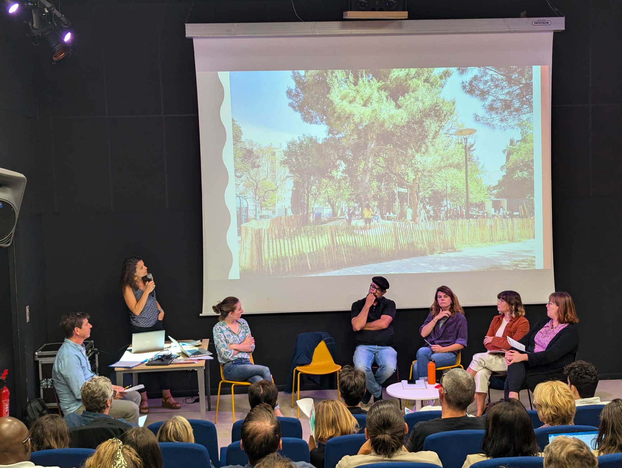 – Re-créer, révéler l’espace, prendre conseil : le CAUE et Gilles Navarro, du Département de l’Hérault, ont présenté dans le cadre d’un atelier un dispositif, l’AET « Re-création, révéler l’espace », co-animé par le CAUE et un artiste. C’est tout particulièrement la démarche d’accompagner les jeunes pour leur permettre de porter un autre regard sur leur environnement quotidien et pour exprimer de manière sensible leur ressenti qui a été abordée.
