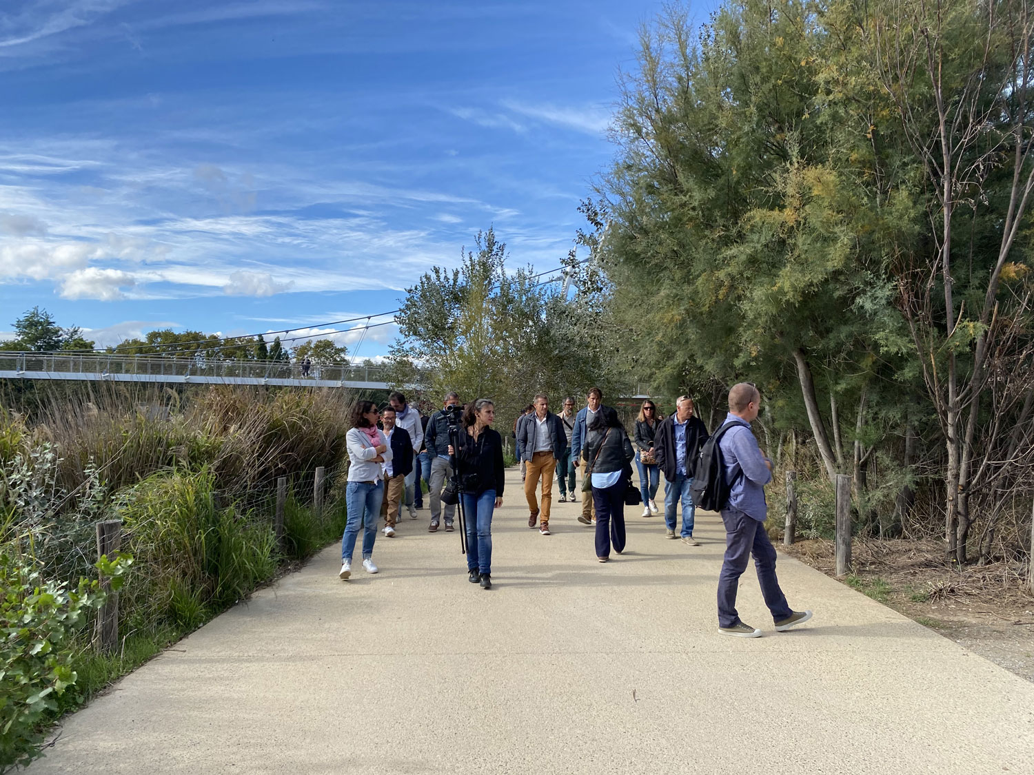 - Rive droite, de l’autre côté de la passerelle : l’aire de stationnement, la promenade…